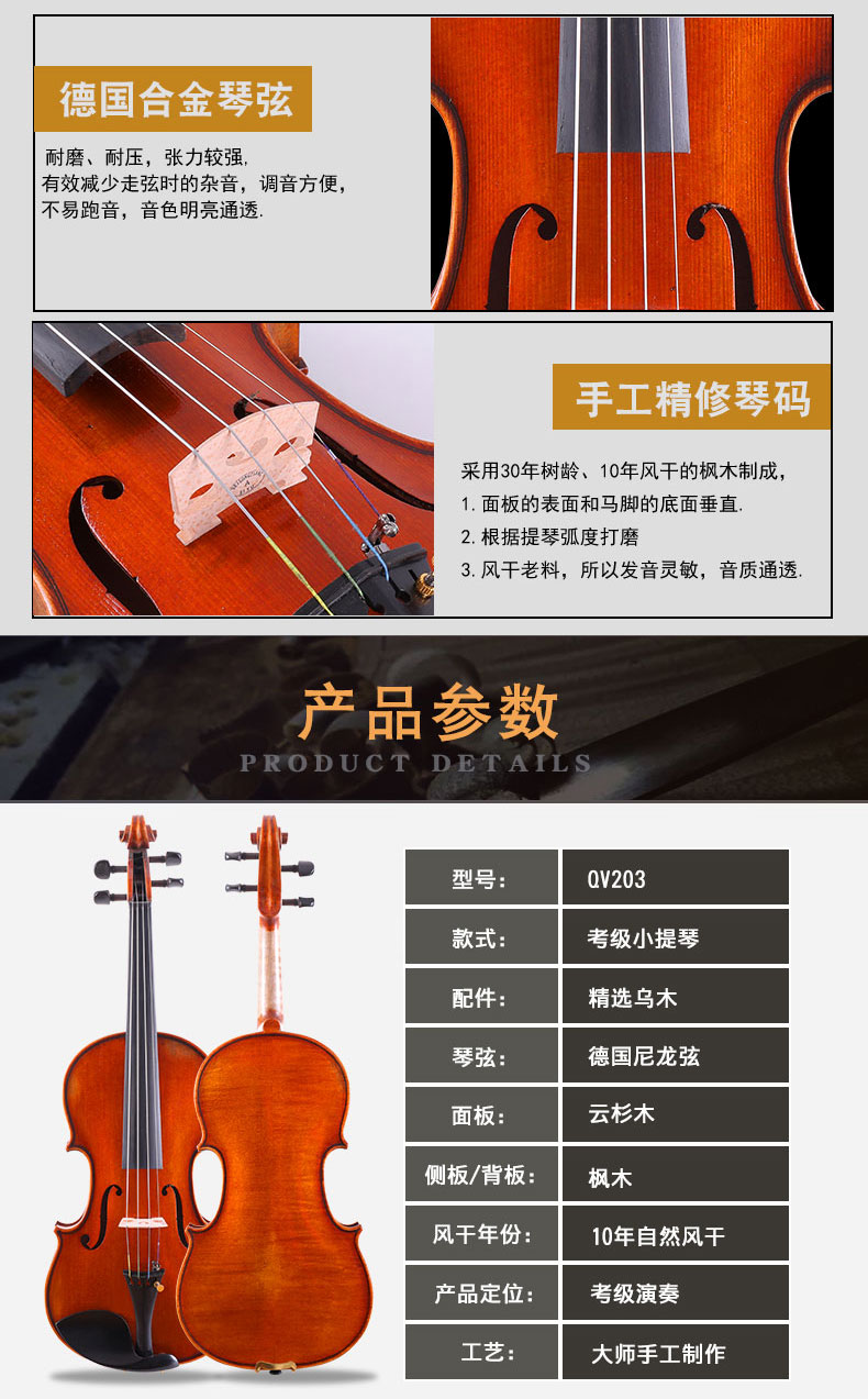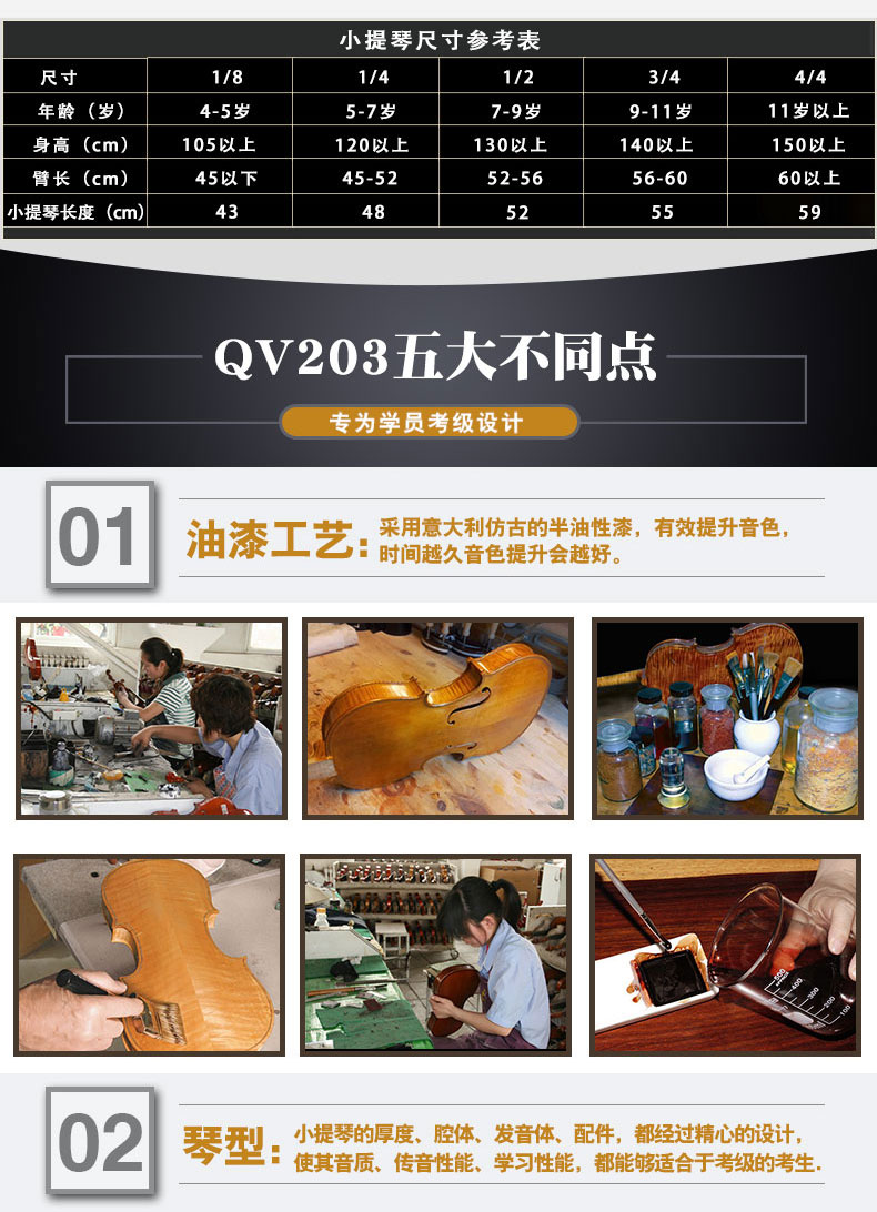 QV203考級(jí)油性漆手工小提琴