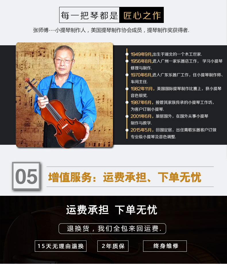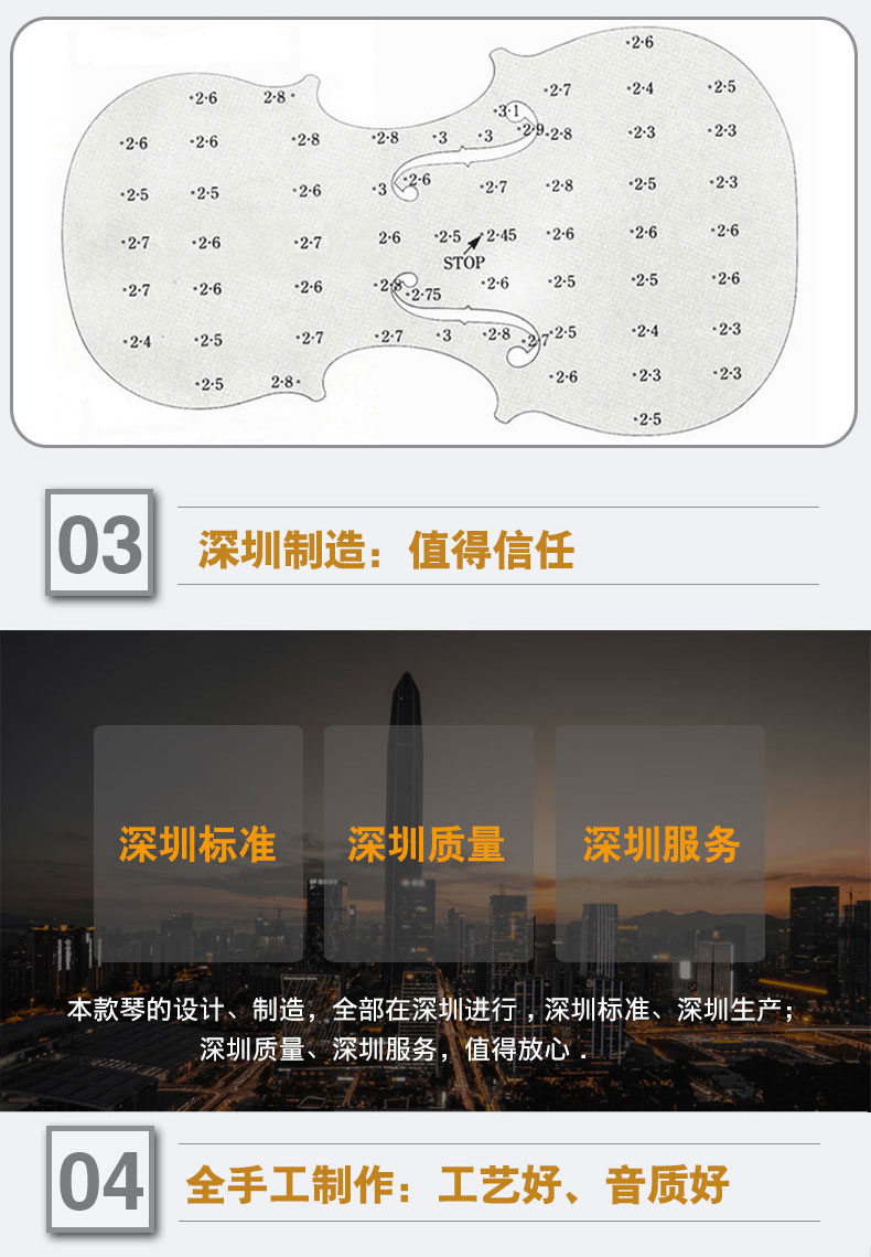 生產(chǎn)工廠:在廣東/江蘇/北京擁有5個(gè)提琴制作工坊;在深圳/東莞有2個(gè)配件工廠
