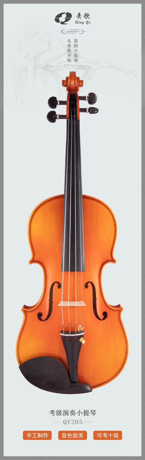 QV205虎紋考純手工油漆考級小提琴
