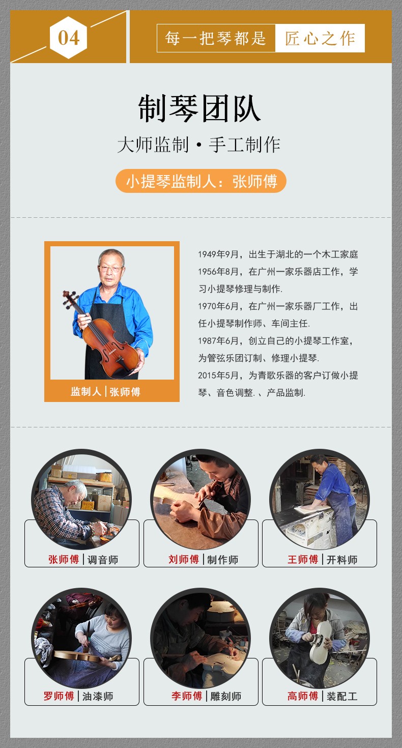 生產(chǎn)工廠:在廣東/江蘇/北京擁有5個提琴制作工坊;在深圳/東莞有2個配件工廠